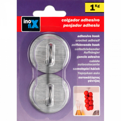 BLISTER 2 COLGADORES ADH. INOX GANCHO 27x40mm 2176-1- INOFIX