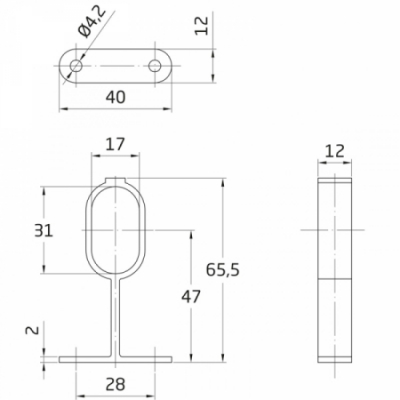 BLISTER 2 SOPORTE CENTRAL TUBO OVAL PLATA 30x15mm N8 2159 AMIG