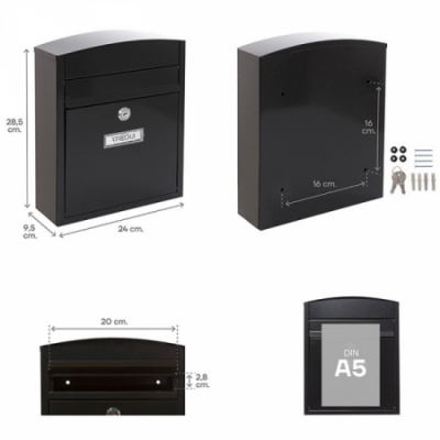 · Con capacidad para correo tamaño DIN A5. Caben hojas DIN A5, hojas DIN A4 dobladas y los sobres pequeños habituales.