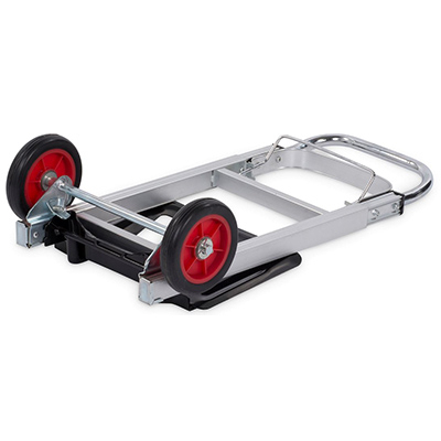 · Este carro de mano es muy compacto cuando está plegado y solo mide 71 cm de alto. Además, está hecho de aluminio, lo que lo hace no solo robusto, sino también muy ligero. No hace falta decir que te llevas a este demonio muy fácilmente contigo.