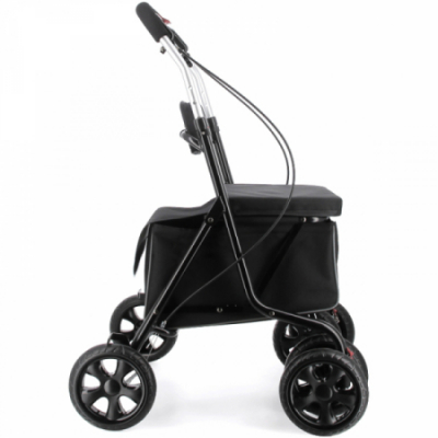 · Carro de compra plegable con asiento y 4 ruedas, 2 direccionables con bloqueo.