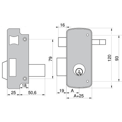 · Cerradura de sobreponer en madera MCM 2556A con palanca y picaporte de doble cilindro.