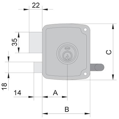 · Cerradura de sobreponer UCEM 4125 de picaporte, palanca y 2 vueltas de llave.