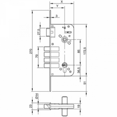 CERRADURA BULONES 891280Y70M3BC 50-80mm LATONADA YALE