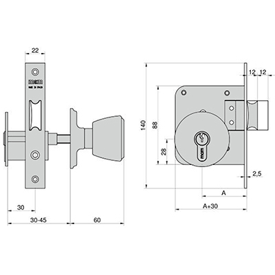 CERRADURA POMO EMBUTIR ENTRADA 70 1561-3-70 MCM