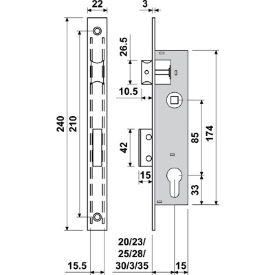 CERRADURA TIPO ISEO-CISA DESLIZANTE E3430-23 BATON