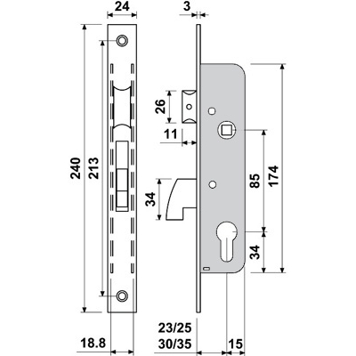 CERRADURA TIPO ISEO-CISA GANCHO BASCULANTE E3411-25 BATON