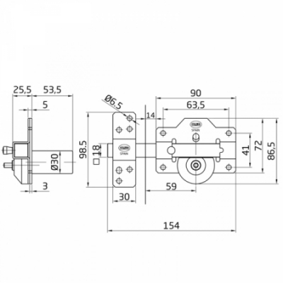 · Cerrojo de sobreponer con cilindro redondo de alta seguridad y pestillode apertura.