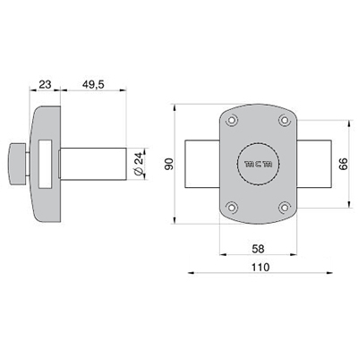 · Cerrojo de seguridad para sobreponer en puertas de madera MCM 3100PR con llave exterior y botón interior.