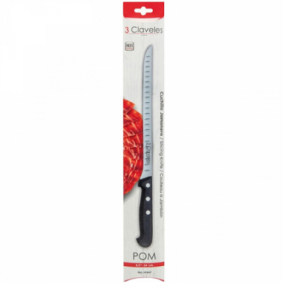 CUCHILLO JAMONERO ALVEOLOS 24cm PROFESIONAL POM 00947 3 CLAVELES