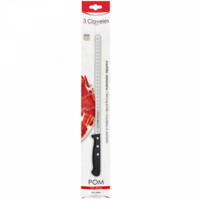 CUCHILLO JAMONERO ALVEOLOS 29cm PROFESIONAL PUNTA ROMA POM 00967 3 CLAVELES