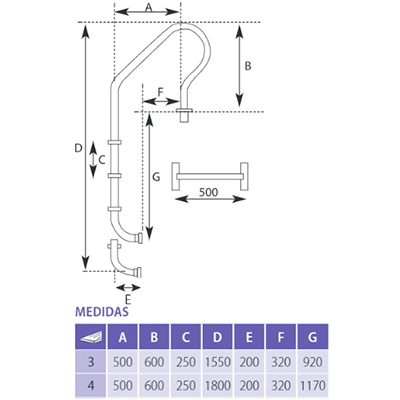 ESCALERA PISCINA 3P MIXTA AISI 304 529123