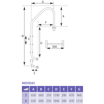ESCALERA PISCINA 3P STANDAR AISI 304 509082