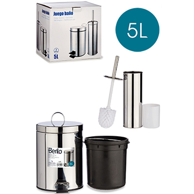 JUEGO ESCOBILLERO CUBO BASURA PEDAL INOXIDABLE 5lt 43939 AR