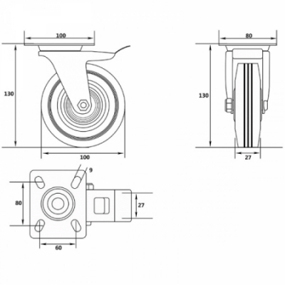 RUEDA GIRATORIA CON FRENO 100mm 87322