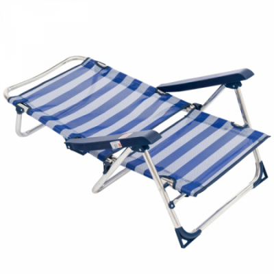 · Silla de playa baja multiposición de fibreline con asa y pata trasera plegable.