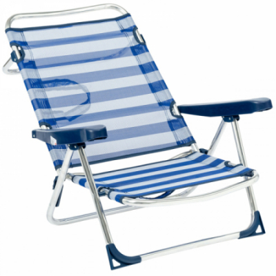 · Silla de playa baja multiposición de fibreline con asa y pata trasera plegable