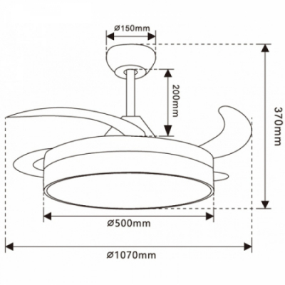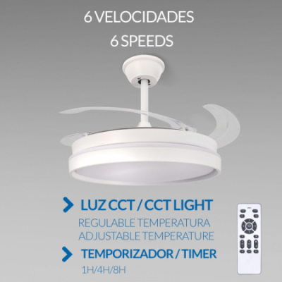 VENTILADOR TECHO 3 ASPAS PLEGABLES 107cm 36w DC HERBEN/AFAR LM8840 LEDME