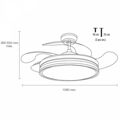 · 4 aspas retráctiles de diseño curvo que maximizan el caudal de aire y reducen el nivel sonoro.